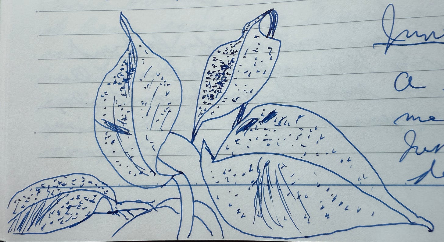 I really enjoy drawing and sketching in my journals, so I’m not sure why I so consistently fall out of the habit. It’s such a fun thing to do, and it livens up the pages so much just to have a little doodle or two of whatever was near me as I sat jotting down my thoughts. Sometimes I simply have no thoughts at all, I’m just sitting, and the most interesting thing I can do is make a bad drawing. I remember it being a revelation to see the instruction in one of Lynda Barry’s books (maybe Syllabus) to get a cheap comp book and start drawing in it, right over the lines, with a cheap Flair pen. Her larger point is that you don’t need any special materials to start drawing. The pen doesn’t have to be nice, neither does the paper, and the pages don’t even have to be blank. For an investment of $2 and fifteen minutes a day, you can begin practicing art.