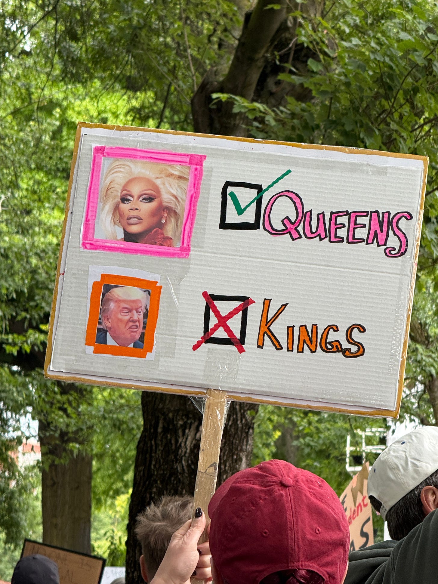 We spent most of Saturday at the No Kings protest at the waterfront. It was really worth the effort of attending and standing for our values. I’m glad we went to march, despite our fears of violence. It only takes one nut with a gun. But there were no incidents, either that we saw or heard about later. We couldn’t hear most of the speeches where we stood, but it was worth it to be there if only to be a few drops in the enormous sea of people who have also had enough, more than enough, had enough on the first day of this moral catastrophe, and need to raise their voices in peaceful opposition. It was moving and inspiring, an example of what this country can be at its best. For me, the biggest effect was to overturn the feelings of isolation, powerlessness and despair that I’ve been feeling since January. This is almost the main reason to attend a protest: for the moral support. Who knows how long its effects will last, but any medicine is welcome if it keeps me going, and keeps me defiant in the face of the constant outrages of this administration, which somehow manage to be petty, stupid, cruel, deeply tragic, and deeply dangerous simultaneously.
