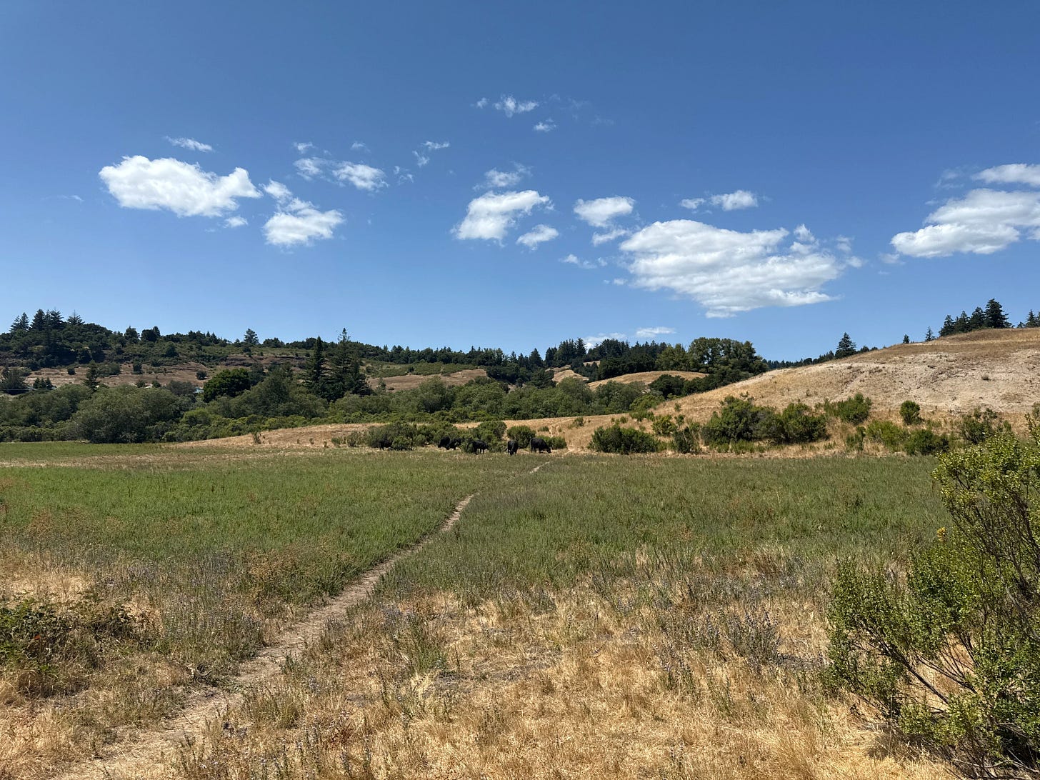I told her about the coyote behind me so she wouldn’t take that trail, and then shared my whole story about growing up in the area and knowing the preserve in general, but not really knowing the trails as they are right now. And since she had come down this new fire road, I wondered if she could tell me where it led? She had great news. It turned out that if I just followed it a little ways up the hill, it would lead to a connector trail going straight back to where I was trying to go, neatly bypassing the stretch where the coyote was hunting.